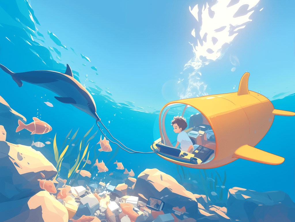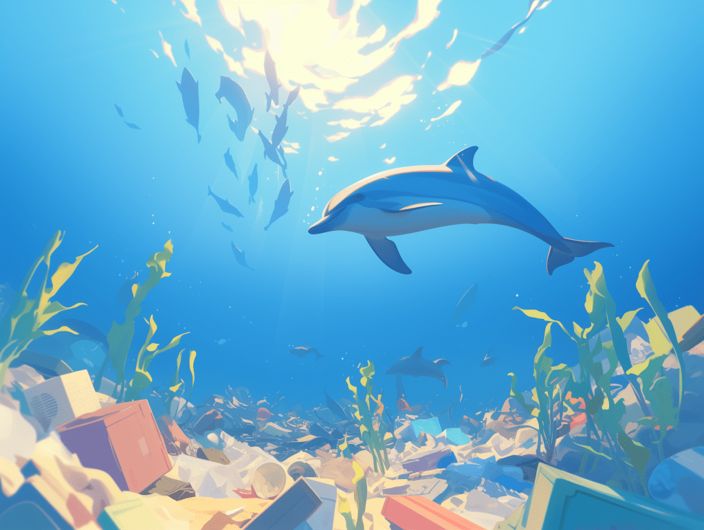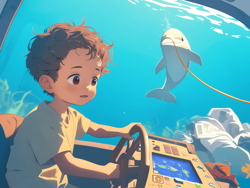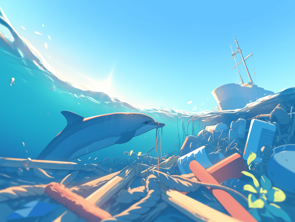 Liam swam towards the dolphin, and decided to free the poor dolphin from the rubbish.
