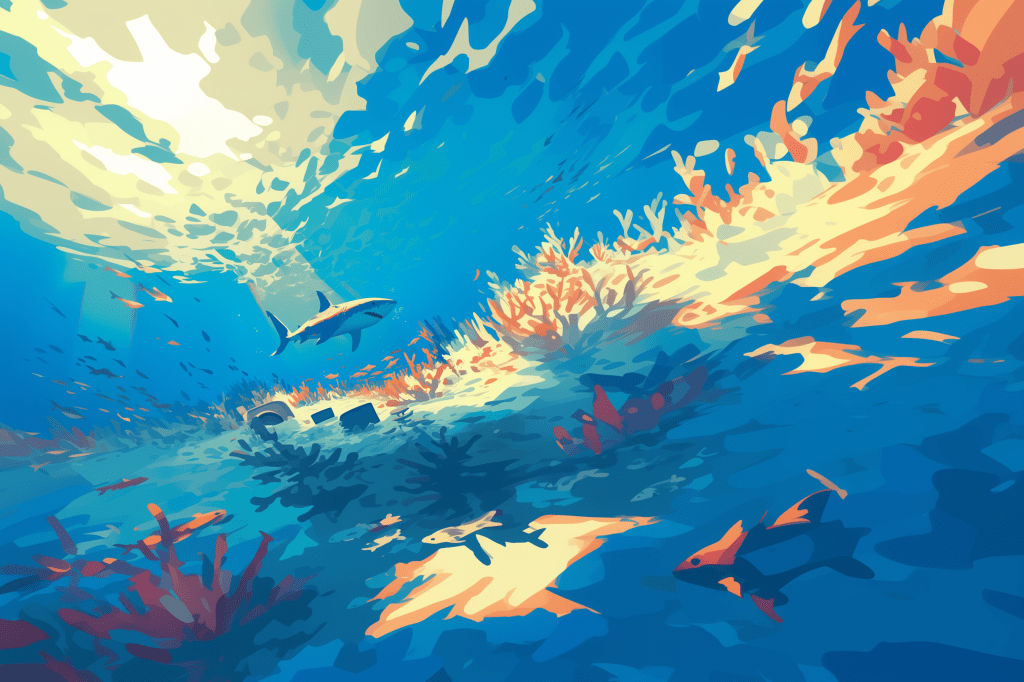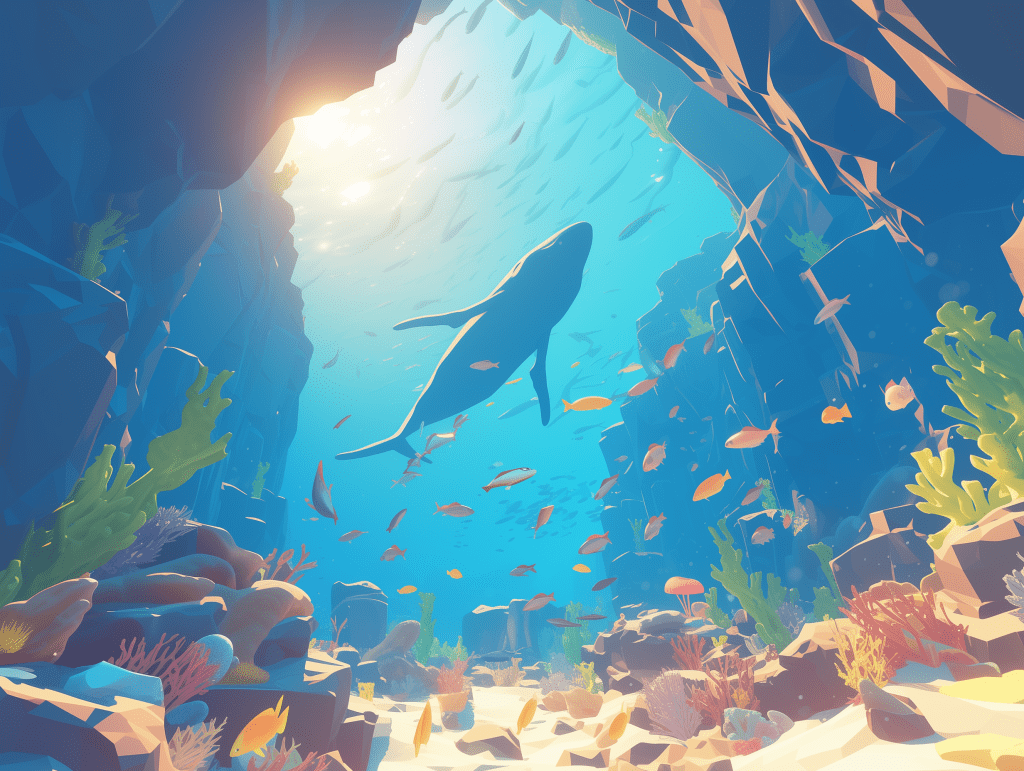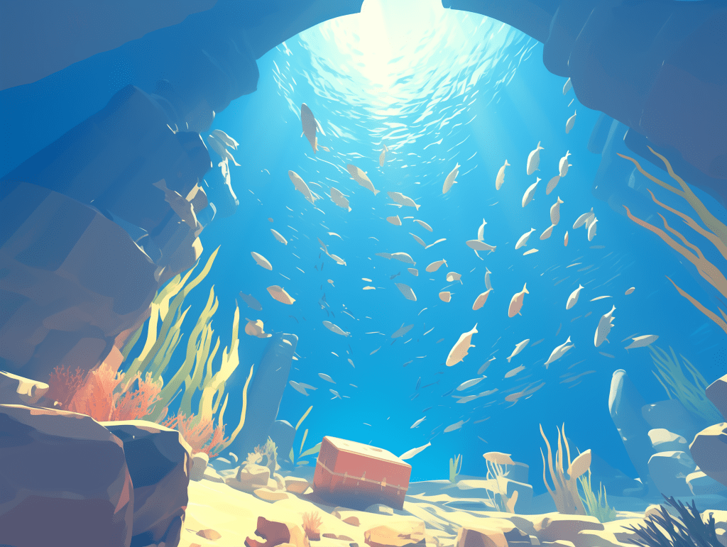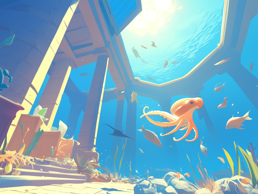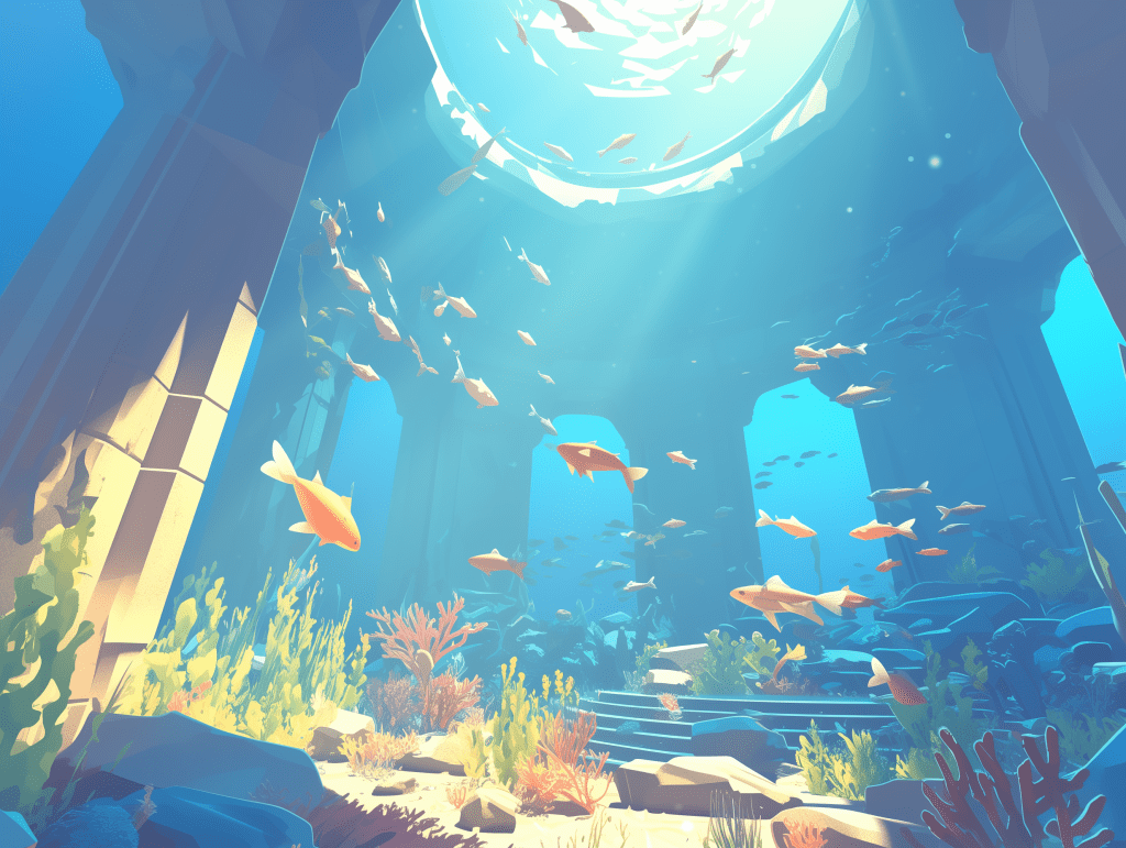 After some time, Liam came across a mysterious underwater city, full of beautiful but empty structures. It appears that a magnificent civilization once thrived in this place!