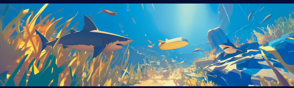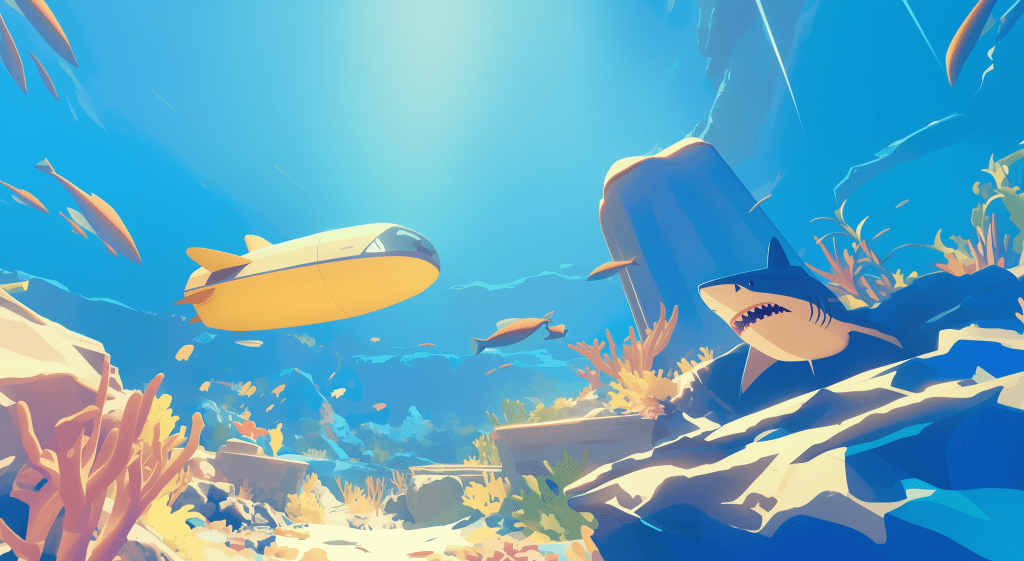 Just as the shark was about to catch the submarine, a dolphin came and pushed the shark away.
