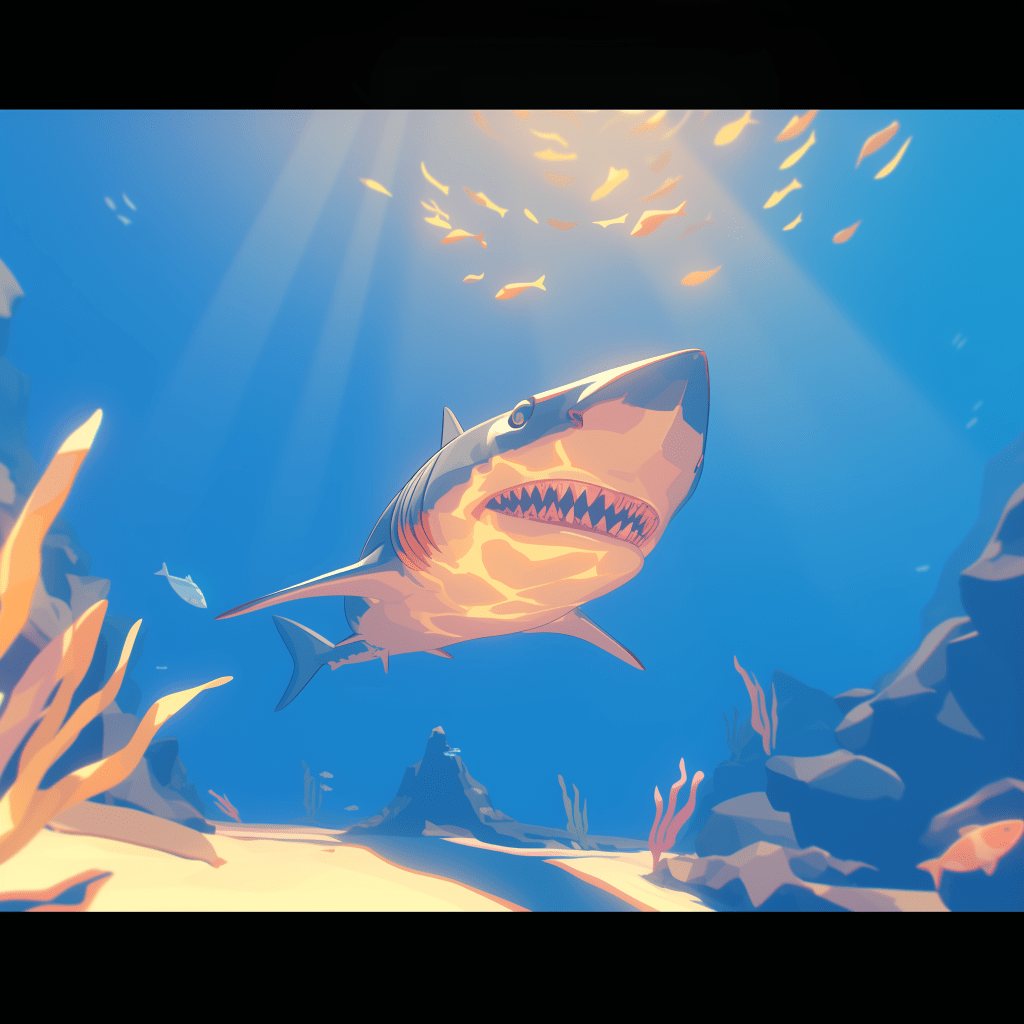 The shark was very fast. It was a great white shark. With sharp teeth and very fierce eyes, the shark looks very scary indeed.