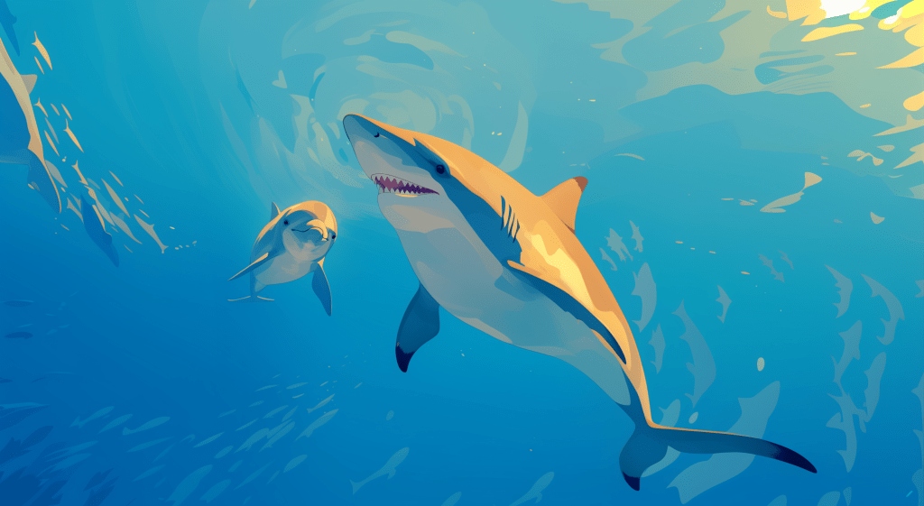 The dolphin was very fast. Faster than the shark. It came to the rescue and pushed Liam and the submarine further and further away from the shark.